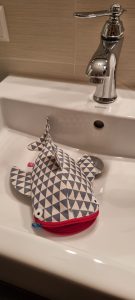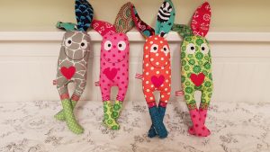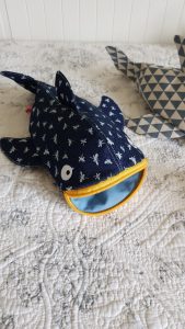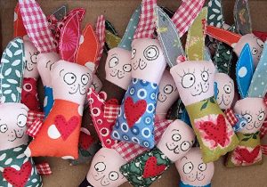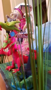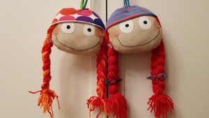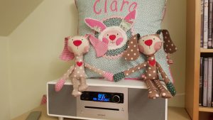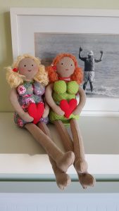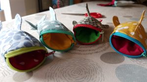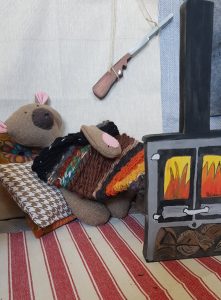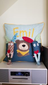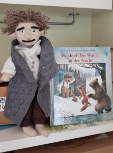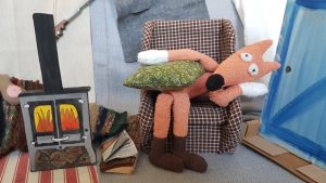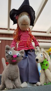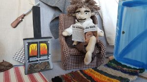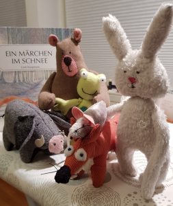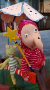 Ich spiele Koffertheater verschiedener Bilderbuchgeschichten. Die Figuren dazu habe ich entworfen und genäht